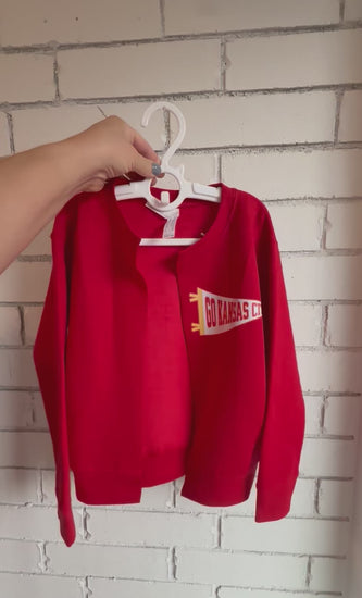 Kansas City Football Girls Sweatshirt Cardigan| Toddler and Girls Red Kansas City Sweatshirt